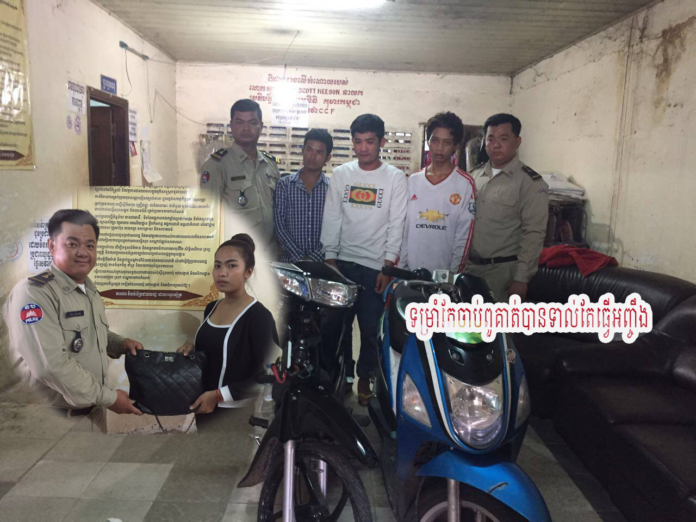 ពីបទលួច មានស្ថានទម្ងន់ទោស (ឆក់យកកាបូបស្ពាយ) កាលពីថ្ងៃទី០៥-១២-២០១៧ វេលាម៉ោង០០ម៉១០នាទីរំលងអាធ្រាត្រ នៅចំណុចមុខធនាគារអេស៊ីលីដា ផ្លូវមុន្នីរ៉េត ក្រុមទី០១ ភូមិ ទ្រា៣ សង្កាត់ ស្ទឹងមានជ័យទី១ ខណ្ឌមានជ័យ រាជធានីភ្នំពេញ ។