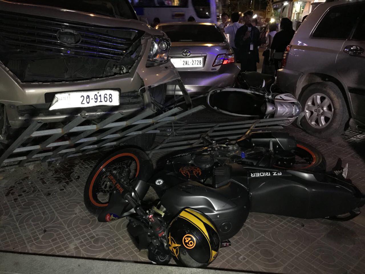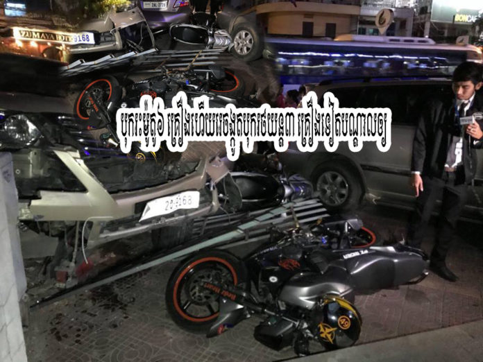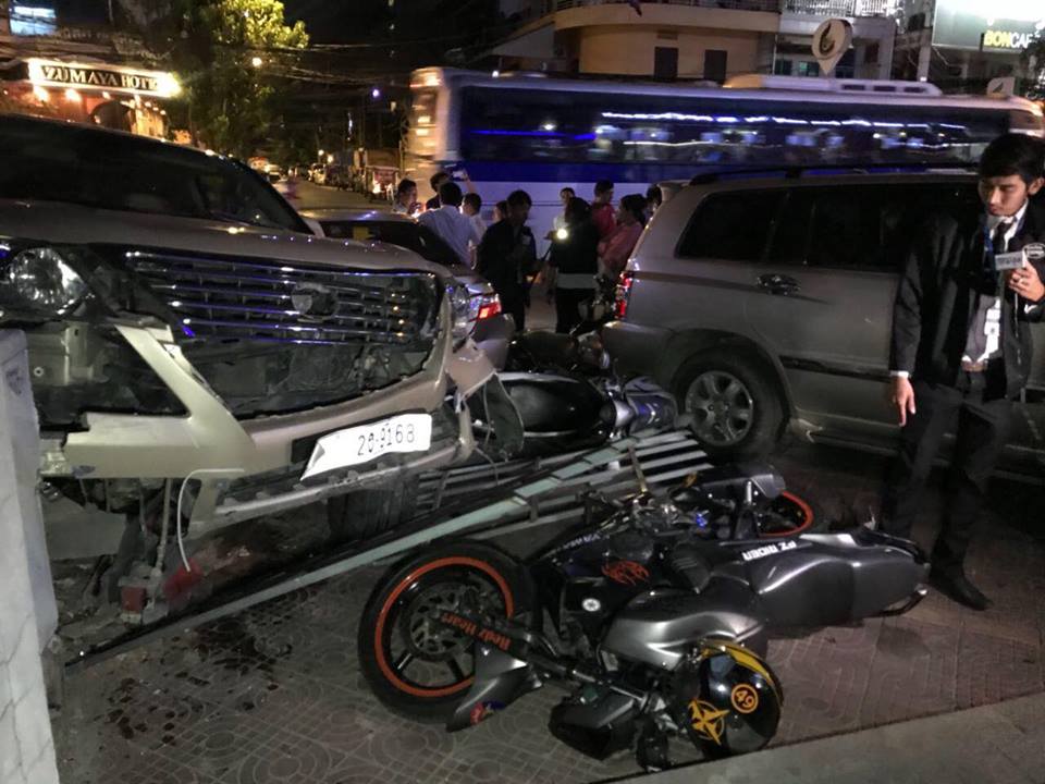 Home khmer-news សូមមេត្តាគោរពច្បាប់ចរាចរណ៍ផង..! បុរសវ័យកណ្ដាលម្នាក់បើករថយន្តឡិចស៊ីស៥៧០ បុករះម៉ូតូ៦គ្រឿងហើយរេចង្កូតបុករថយន្ត៣គ្រឿងទៀតបណ្ដាលឲ្យមនុស្ស៦នាក់រងរបួសធ្ងន់ស្រាល