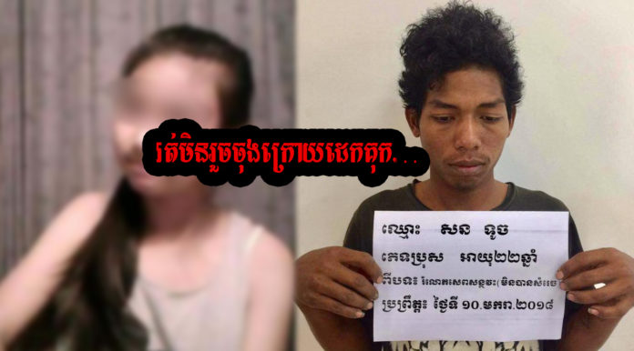 យោងពាក្យបណ្តឹង ចុះថ្ងៃទី១១ ខែមករា ឆ្នាំ២០១៨ របស់ជនរងគ្រោះឈ្មោះ ពៀត សុចាន់ ភេទស្រី អាយុ១៤ឆ្នាំមានទីលំនៅភូមិសាលាក្រៅ សង្កាត់ភ្នៀតក្រុងសិរីសោភ័ណ ស្តីពីបទរំលោភសេពសន្ធវៈ (មិនបានសម្រេច)ប្រព្រឹត្តកាលពីរសៀលថ្ងៃទី១០ ខែមករា ឆ្នាំ២០១៨ ជនសង្ស័យឈ្មោះ សន ទូច ភេទប្រុសអាយុ២២ឆ្នាំមុខរបរ បើកឡានដឹកដីមានទីលំនៅភូមិព្រៃមូល ឃុំត្រពាំងឬស្សី ស្រុកកំពង់ស្វាយ ខេត្តកំពង់ធំ ដើម្បីធ្វើការសាកសួរអំពីរឿងហេតុខាងលើ តាមម្លើយសារភាពរបស់ជនសង្ស័យខ្លួនពិតជាបានធ្វើសកម្មភាពរំលោភ ទៅលើជនរងគ្រោះពិតប្រាកដមែនពេលកំពុងធ្វើសកម្មភាព ម្តាយមីងរបស់ជនរងគ្រោះបានមកទាន់ក៏ស្រែកឆោឡោ ទើបជនសង្ស័យក៏គេចខ្លួនឡើងរថយន្ត ជិះចេញតែម្តង តាមចម្លើយបំភ្លឺរបស់ជនរងគ្រោះ និងម្តាយមីងដែលឃើញហេតុការណ៍ និងចម្លើយសារភាពរបស់ជនសង្ស័យឃើញមានភាពស៊ីសង្វាក់គ្នា កម្លាំងជំនាញកងរាជអាវុធហត្ថខេត្តបានកសាងសំណុំរឿងបញ្ជូនជនសង្ស័យទៅតុលាការ។