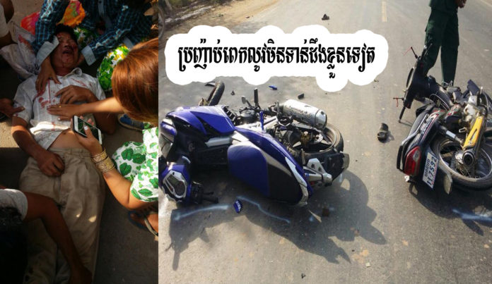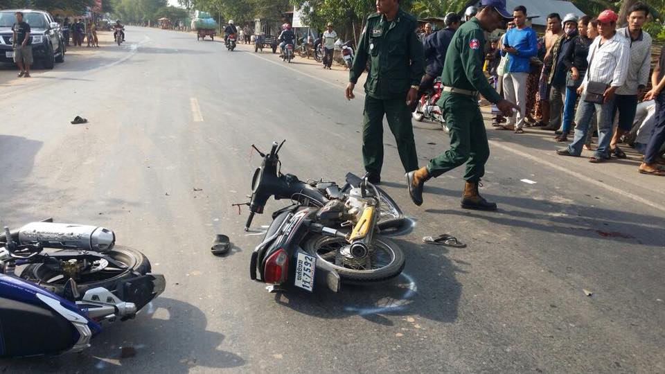 ករណី:គ្រោះថ្នាក់ចរាចរណ៍ផ្លូវគោករវាងម៉ូតូន៨ងម៉ូតូបណ្តាលឲ្យរងរបួសធ្ងន់១នាក់ ប្រុស របួសស្រាល១នាក់ប្រុស ម៉ូតូខូចស្រាល២គ្រឿងកើតហេតុនៅថ្ងៃទី១៦-០១-២០១៨វេលាម៉ោង៨-៤៥នាទីចំណុចគីឡូម៉ែត្រលេខ៥១-៥២ រវាងម៉ូតូនិងម៉ូតូទិសដៅបញ្ចាស់គ្នា។