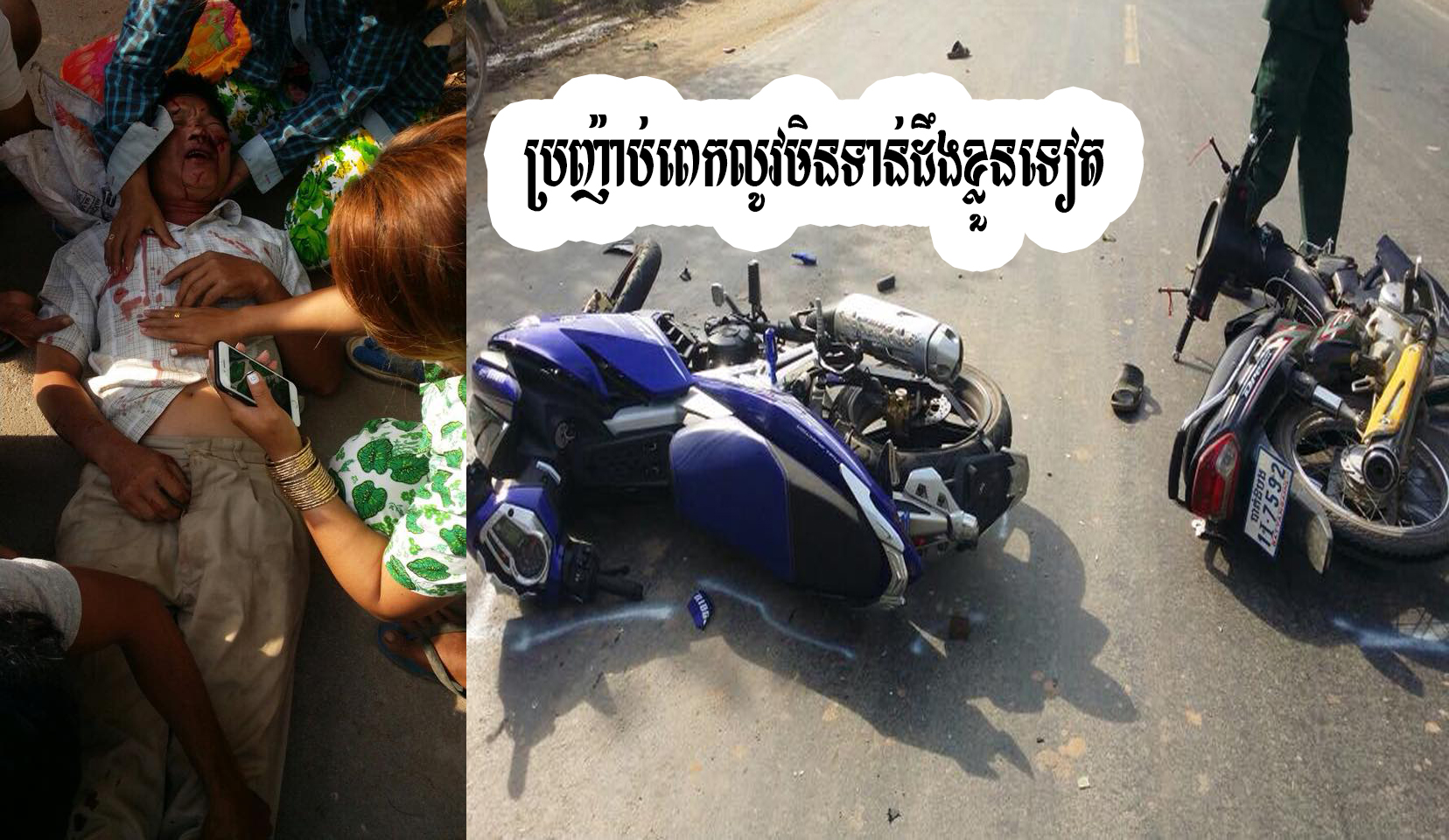 ជិះម៉ូតូម៉ាកHONDADEAM125ពណ៌ខ្មៅពាក់ផ្លាកលេខបាត់ដំបង1I7592ទិសដៅភ្នំពេញ-អ្នកលឿងមកដល់ចំណុចកើតហេតុខាងលើឈ្មោះសសុចិត្រាជិះម៉ូតូវ៉ាឡានដល់ទ្រូងផ្លូវហើយជ្រុលចង្កូតមកបុកម៉ូតូឈ្មោះគាប្រាមកពីភ្នំពេញអ្នកលឿងបណ្តាលអោយរបួសធ្ងន់បច្ចុប្បន្នបញ្ជូនទៅមន្ទីពេទ្យនៅភ្នំពេញចំណែកឈ្មោះសសុចិត្រាគេចខ្លួនបាត់។ចំពោះម៉ូតូទាំង០២គ្រឿងក៏បានដឹកមករក្សាទុកនៅប៉ុស្តិដើម្បីរងចាំជំនាញករណីនេះបណ្តាលមកពីអ្នកបើកបរម៉ូតូទាំងពីរ