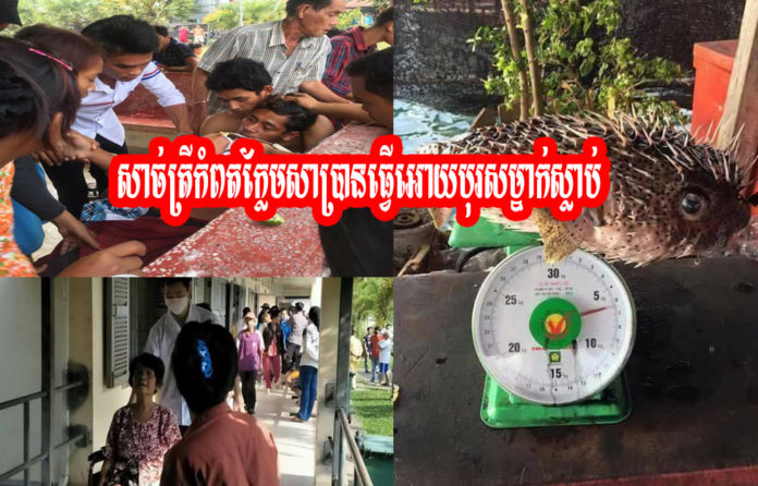 ខេត្តកោះកុង៖ កាលពីវេលាម៉ោងប្រមាណ១១៖១៥នាទីថ្ងៃទី២២ ខែមករា ឆ្នាំ២០១៨នេះ នៅចំណុចលើផែរបស់ឈ្មោះសៀង ដារ៉ា នៅភូមិកោះស្ដេច ឃុំកោះស្ដេច ស្រុកគិរីសាគរ មានប្រជាពលរដ្ឋចំនួន៩នាក់ បានហូបសាច់ត្រីកំពតក្លែមសា្រ រហូតដល់ម៉ោង១៥៖២៥នាទី ពួកគាត់មានសភាពធីងធោងនិងក្អួតចង្អោរ រយចត្រូវបានបញ្ជូនមកធ្វើការសង្គ្រោះបន្ទាន់នៅមណ្ឌលសុខភាគិរីសាគរ។