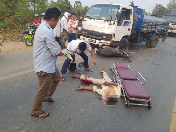 ស្រុកកៀនស្វាយ: ថ្ងៃអាទិត្យ ១១រោជ ខែមាឃ ឆ្នាំរកា នព្វស័ក ព.ស២៥៦១ ត្រូវនិងថ្ងៃទី ១១.០២.២០១៨ម្សិលមិញនេះមាន ករណី:គ្រោះថ្នាក់ចរាចរណ៍ ផ្លូវ គោករវាង ម៉ូតូនិងរថយន្តបណ្តាលអោយរបួសធ្ងន់ ០១ នាក់ ភេទប្រុស និងបណ្តាលឲ្យម៉ូតូខូចធ្ងន់១ គ្រឿង ចំពោះរថយន្តខូចស្រាល១គ្រឿង កើតហេតុនៅៃថ្ងអាទិត្យ ១១រោជ ខែមាឃ ឆ្នាំរកា នព្វស័ក ព.ស២៥៦១ ត្រូវនិងថ្ងៃទី ១១.០២.២០១៨វេលាម៉ោង ១៧:២០នាទីមានករណីគ្រោះថ្នាក់ ចរាចរណ៍ មួយករណីកើតឡើងនៅ់លើផ្លូវជាតិ លេខ១ ក្នុងចន្លោះគីឡូម៉ែត្រលេខ២២-២៣ចំណុច ភូមិចិនកោះ ឃុំគគីរ ស្រុកកៀនស្វាយ ខេត្ត កណ្តាល។ករណីនេះកើតឡើងរវាងម៉ូតូម៉ាកHONDA WAVE RSX 110 ពណ៌ក្រហមចាស់ ប្រភេទស្រី ពាក់ផ្លាក លេខ ព្រៃវែង 1G-9654 បើកបរដោយឈ្មោះឃុត សារុន ភេទប្រុស អាយុ២៨ ឆ្នាំ មានទីលំនៅ ភូមិត្រពាំតាអី ឃុំព្រែកអី ស្រុកស្វាយទាប ខេត្តស្វាយរៀង ដែលបើកមាន ទិសដៅពីភ្នំពេញ ទៅអ្នកលឿង តាមផ្លូវជាតិ លេខ១ ។ ពេលមកដល់ចំណុកើតហេតុខាងលើ បានបើកជែងរថយន្ត ដែលបើកមានទិសដៅស្របគ្នា ហើយទៅបុកជាមួយរថយន្តម៉ាក HYUNDAI ពណ៌ស ប្រភេទដឹកទំនិញធុនតូច ពាក់ផ្លាក ក-8616 ភព3 បើកបរដោយជនមិនស្គាល់អត្តសញ្ញាណ ដែលបើកមានទិស ដៅផ្ទុយគ្នា បណ្តាលអោយ រងរបួសធ្ងន់ អ្នកបើកបរឈ្មោះឃុត សារុន បញ្ជូនទៅព្យាបាល នៅបន្ទីរពេទ្យកាល់ម៉ែត្រ។
