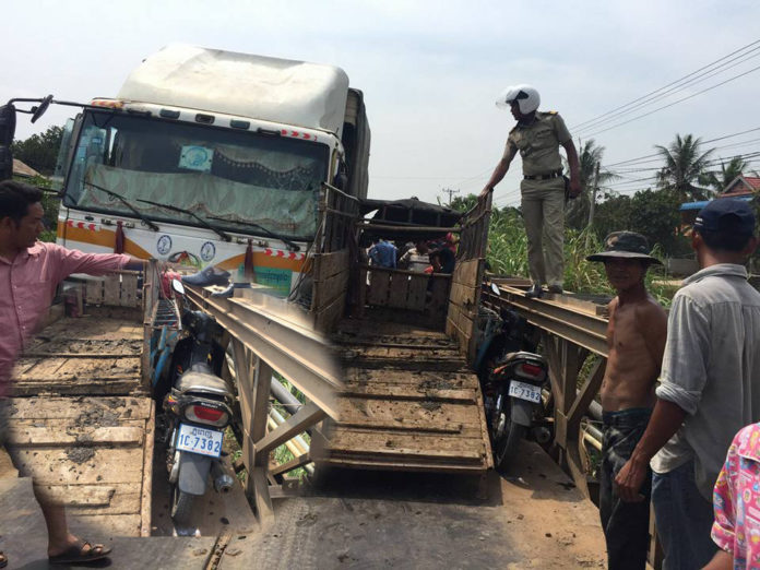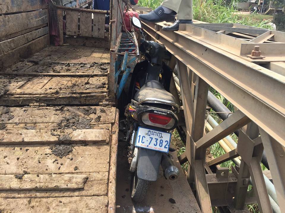 អ្នកបើកបររថយន្ត បើកបរមិនគោរពសិទ្ធិអាទិភាព ពេលជិតមកដល់ស្ពាន មិនបន្ថយល្បឿង ទុកឲ្យម៉ូតូសណ្ដោងរឺុម៉ក ឆ្លងផុតស្ពាន សិន ។ករណីនេះកំលាំងជំនាញនិង កំលាំងប៉ុស្ដិ បានចុះទៅដល់កន្លែងកើតហេតុធ្វើការវាសវែង រួចជួយសំរួលចរាចរណ៍ ឯមធ្យោបាយ ពាក់ពន្ធ័ យកមករក្សាទុកនៅអធិការដ្ឋាន ចំណែក ខូចធ្ងន់កំពុងរកមធ្យោបាយ យកចេញពីលើស្ពាន ។
