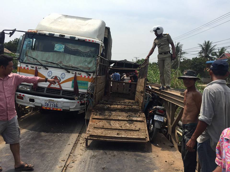 នាក់ ធ្ងន់ ១ នាក់ ស្រី ស្រាល ១ នាក់ប្រុស និងរបួសសត្វគោ ២ ក្បាល ខូចខាតរថយន្ដធ្ងន់ ១ គ្រឿង ម៉ូតូខូចស្រាល ២ គ្រឿង។ជនរងគ្រោះបើកម៉ូតូសណ្ដោងរឺុម៉ក ឈ្នោះស៊្រាន សារ៉ុម ភេទប្រុស អាយុ ៣៧ឆ្មាំ មុខរបរ