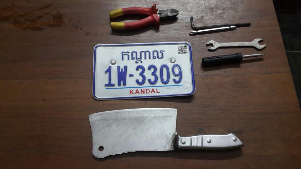៤-ដង្កាប់មុខកន្ត្រៃ០១ កាំបិតបុ័ងតោអុីណុក០១ កាបូបស្ពាយពណ៌ខ្មៅ០១ ស្លាកលេខកណ្តាល1W-3309 ចំនួន០១ កូនសោរម៉ូតូ០១ និងសម្ភារៈ ប្រព្រឹត្តបទល្មើសមួយចំនួន ។
