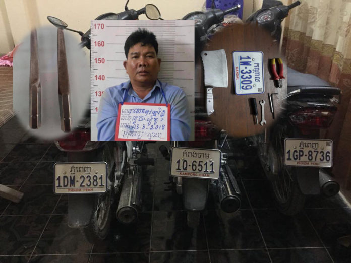 ១-ឈ្មោះ ឆោម ពណ្ណឬទ្ធិ ភេទប្រុសអាយុ១៨ឆ្នាំមានទីលំនៅ ភូមិស្លែង ឃុំត្រពាំងវែង ស្រុក កណ្តាលស្ទឹង ខេត្តកណ្តាល (ម្ចាស់ម៉ូតូម៉ាក Honda dream 125 ពណ៌ខ្មៅ ពាក់ផ្លាកលេខ កណ្តាល 1W-3309 សេរីឆ្នាំ2017 ជនសង្ស័យដោះផ្លាកលេខចេញដូរដាក់ផ្លាកលេខ កំពង់ចាម1Q-6511 ។