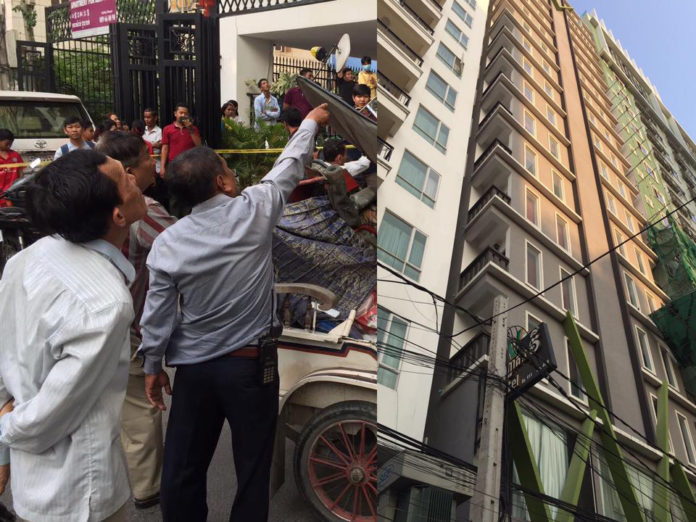 កាលពីម្សិលមិញនេះ៖ មានករណីជនជាតិបរទេសម្នាក់លោតពីលើអាគារជាន់ទី៦សម្លាប់ខ្លួន ធ្លាក់មកទើជាប់និងម៉ូតូកង់បី