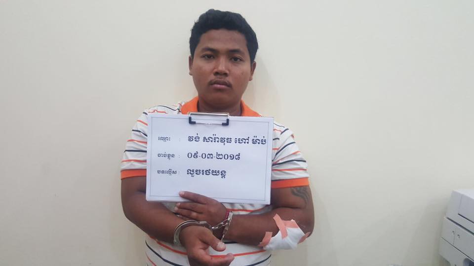 -ឃាត់ខ្លួនថ្ងៃទី០៩-០៣-២០១៨ វេលាម៉ោង១៣,០០នាទី កម្លាំងការិយាល័យ សហការណ៍ជាមួយកម្លាំងអធិការដ្ឋាននគរបាលខណ្ឌពោធិសែនជ័យ ឃាត់ខ្លួននៅចំណុផ្ទះគ្មានលេខ ផ្លូវលំ ភូមិ កាត់ភ្លុក សង្កាត់ ភ្លើងឆេះរទេះ ខណ្ឌពោធិ៍សែនជ័យ រាជធានីភ្នំពេញ ។