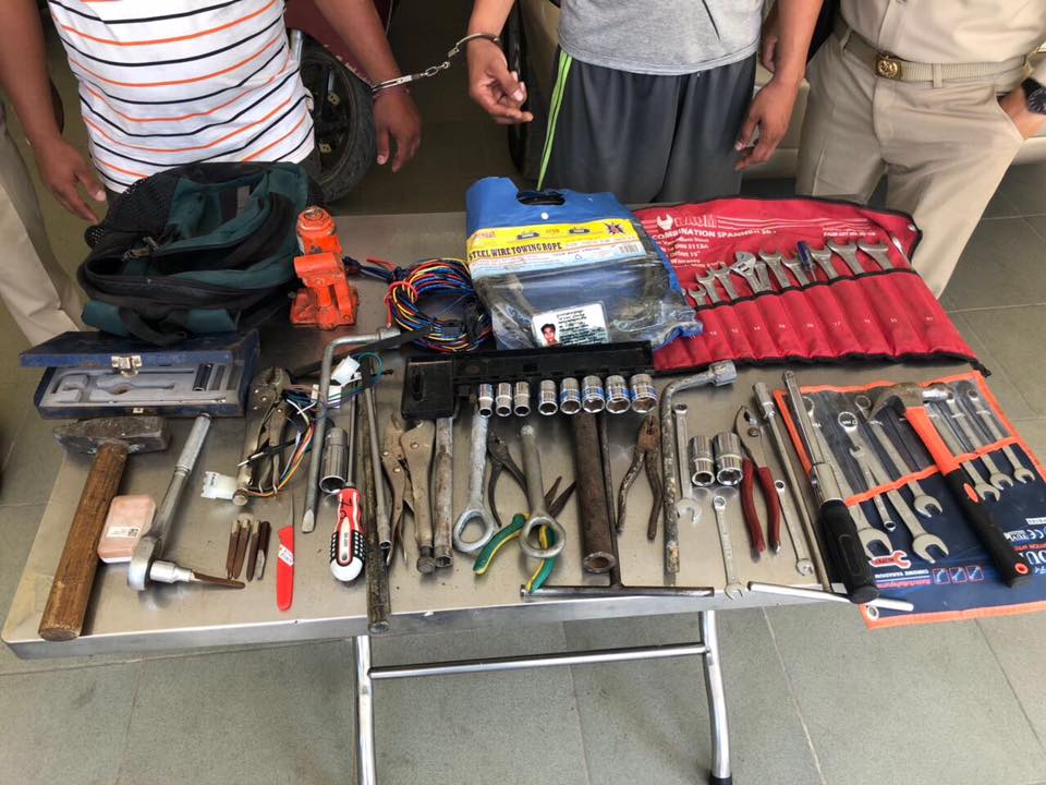 – ខ្សែគ្រឿងភ្លើងរថយន្ត,-រូបថត,-ឯកសារទិញ-លក់រថយន្ត,-សោសម្រាប់ដោះគ្រឿងបន្លាស់រថយន្ត, -សោរាងអក្ស T កន្ទុយអន្ទុង ចំនួន ០៥ ដើម, -ដង្កាប់ ចំនួន ០៤ ,-ទួណឺវីស ចំនួន ០២-ញញួរ ចំនួន ០១,-សោខ្សៀ ចំនួន ០៣, -បំពង់ទីប ចំនួន០៣, -សោចិញ្ចៀន ចំនួន ១២ គ្រាប់, -ដែកស្រួចកន្ទុយអន្ទុង ចំនួន ០១, -ប្រាក់ដុល្លារចំនួន ១៤,៧០០ដុល្លារអាមេរិក (មួយម៉ឺនបួនពាន់ប្រាំពីររយដុល្លារអាមេរិក) ,ម៉ូតូមួយគ្រឿងម៉ាកហុងដាស្កុបពីពណ៌ក្រហម លេខតួ ៥០៤៥៦៥៤ លេខម៉ាស៊ីន ០០៤៥៦៥៤ ពាក់ស្លាកលេខ ភ្នំពេញ១GJ-៨៤៩៦ និង -រថយន្ត មួយគ្រឿងម៉ាក TOYOTA HIGHLANDER ពណ៌ទឹកមាស សេរីឆ្នាំ២០០៣ លេខតួ JTEDP ២១A ៩៤០០១៥៦៩៤ ពាក់ស្លាកលេខ ភ្នំពេញ ២AK ៦៨០៨ ។