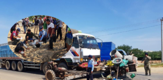 រថយន្ដមួយគ្រឿងម៉ាកHYUDAIធន់ដឹកទំនិញពណ៍សបានប៉ះគ្នាជាមួយទន្លេថង០១គ្រឿងបណ្ដាលអោយ…..