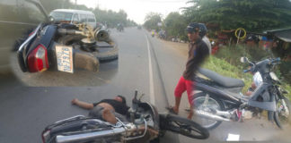 ដាច់ជើងត្មិល…ឡានបុកជាមួយម៉ូតូបណ្ដាលឲ្យមនុស្ស២នាក់រងរបួសធ្ងន់