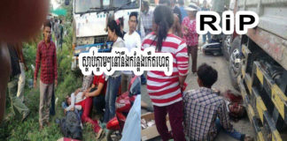 នារីជាបុគ្គលិកធនាគារ អេស៊ីលីដា២នាក់បានស្លាប់ និង៣នាក់ ទៀតរងរបួសធ្ងន់ ក្នុងហេតុការណ៍រថយន្តបែនដឹកដី បុករៈរថយន្តកាមរីឆ្លាម រួចជ្រុលទៅបុកម៉ូតូមួយគ្រឿង